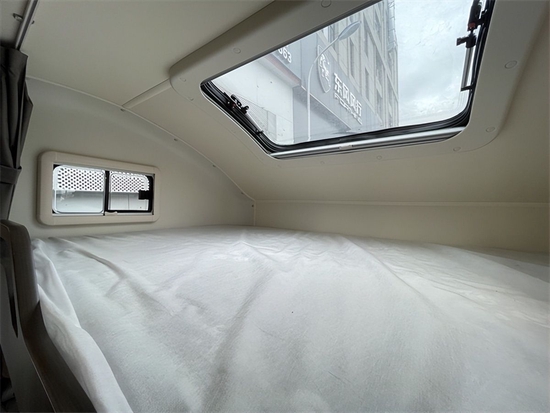 驾驶区上方的额头上有一张超大双人床。额床两侧有通风窗。额头上方单独设计了一个大天窗,白天用于采光,也是晚上观赏美丽夜景的最佳场所。